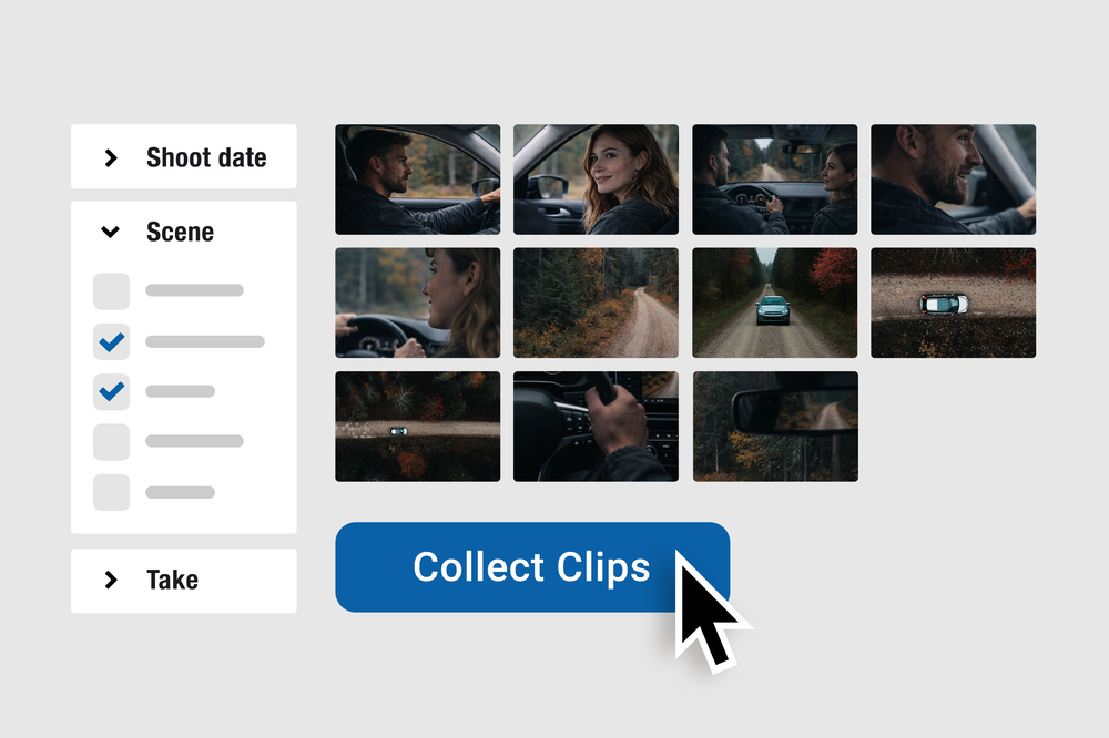Sometimes you know exactly which shots you need for a selection — for example, all shots from a specific scene or all the material from a particular episode. Yet the clips are scattered across multiple playlists, shooting days, or folders.